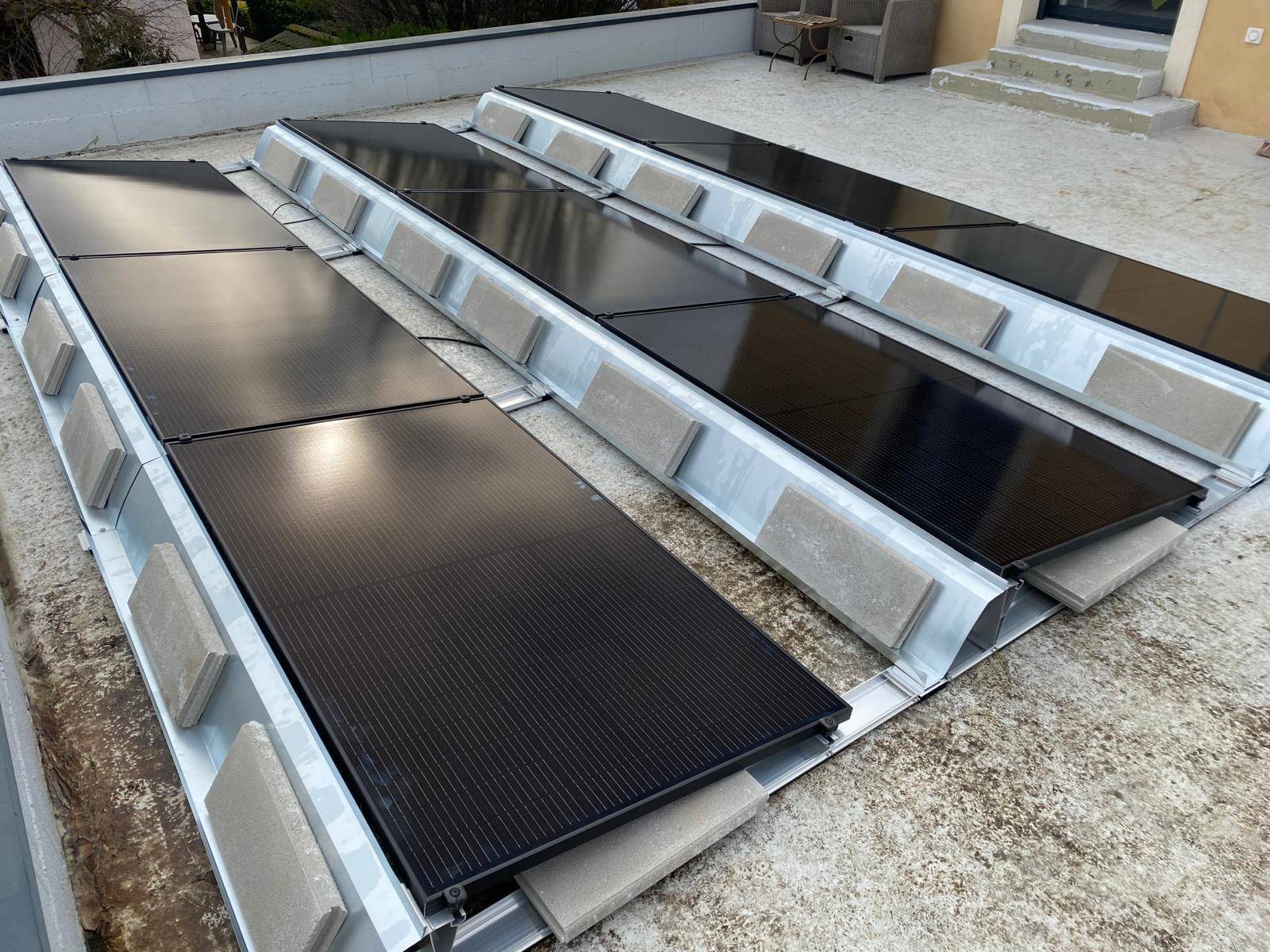Installation de panneaux photovoltaïques  en surimposition sur toit plat et Bourgeois Global à Liergues  6kwc
